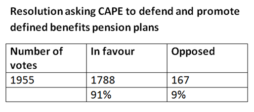 In addition, following a petition and complaint brought against CAPE President Emmanuelle Tremblay by 140 members in February 2016, the full membership of CAPE was required to vote on whether Ms. Tremblay would continue in her post or be removed from office. Of the 1,768 members who voted, 49 % voted to retain the President, while 51 % voted to recall her, thus keeping the president in office until the end of her term on December 31. A two-thirds majority of the ballots cast in the vote would have been required to force the president’s removal from office.